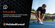 If you’re wearing running shoes when you play pickleball, you should consider replacing them with pickleball court shoes soon so you don't injure yourself on the court. Running shoes are designed strictly for forward movement, not for the quick lateral movements that pickleball requires. The soles of running shoes flare out, and can easily cause an ankle injury if you land wrong when moving side to side. If you've been bitten by the pickleball bug like the rest of us, do yourself a favor and get a proper pair of court shoes before you end up with a sprained ankle!