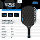 When we want more forgiveness and stability without giving up quick handling, the Diadem Edge BluCore Hybrid 16mm fits the bill. The thicker 16mm BluCore core uses the same EPP material found in the rest of the line, designed to resist dead spots and delamination while keeping the sweet spot broad and consistent. The added thickness, as well as the surrounding Power Sync foam ring, softens the feel, giving us longer dwell time and a bigger sweet spot for steadier resets and more control on dinks. At the same time, the 16.2” Hybrid shape stays quick in our hands, making it easier to react in fast rallies than with the elongated Pro.