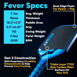 Compared to the Fever 102, the Fever plays lighter and faster, with a slightly narrower 7.5" profile that slices through the air for extra spin and speed. The Fever 102 offers more stability and forgiveness, but this model is the better choice for players who rely on precision and quick reflexes at the kitchen line.
