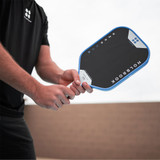 Additionally, the 16mm low density polypropylene core works with EVA edge foam to keep the face steady on contact, reducing flutter and widening the usable hitting area. That combination helps the paddle stay predictable when blocking heavy shots or resetting under pressure which means we still get the crisp feedback expected from a power-oriented carbon face, but the feel never crosses into harsh.