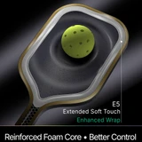 With a trusty elongated platform and a distinctly assertive style, The MEHAU E5 Precision Pickleball Paddle helps us bring fast paced power to every match we play. The 16mm STPEV elastomer EPP foam core returns energy more efficiently than the cushioned core in the E4, so drives, counters, and speed-ups come off the face with more push and depth. We still get useful control, but the E5 rewards us when we accelerate through contact and trust the paddle to help us pressure opponents.