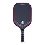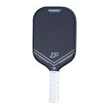 The 8.2-ounce Parrot Paddles NCAA Logo Pro-Formance Pickleball Paddle is a 16.25” hybrid pickleball paddle with a 7.5-inch wide Raw Carbon hitting surface. This Sure-Spin coated face offers rigidity for impressive dwell time and a crispy feel, as well as long-lasting tack that grips the ball upon contact to impart spin that is necessary for players with a deep bag of shots. Supporting this well-trusted hitting surface is a 16mm polypropylene honeycomb core that cushions impact for control, eats up vibrations to limit fatigue, and rebounds behind the ball for just a little extra power when you really need it.