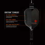 Instead of a traditional honeycomb core, HONEYFOAM uses a layered foam architecture that starts with a low-density EPP core. That core is strategically wrapped from the 4 to 8 o’clock positions with high-performance EVA foam, increasing energy return while extending dwell time. A perimeter foam ring completes the system, stabilizing the face, enlarging the sweet spot, and reducing vibration across the paddle. The result is a remarkably smooth response that still delivers modern power when we accelerate through the ball.