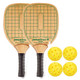 Bundle includes two durable wood paddles and four balls. Get on the courts without breaking the bank!