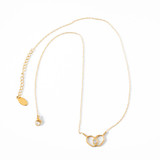 We pair The Dainty Dinker Paddle Tap Necklace with a performance polo on the court and a nice blouse off of it. This 18K gold coated Stainless Steel necklace features two pickleball paddles delicately looped together striking a sparkling CZ stone that serves as the ball. This eye-catching design allows us to show our love for the game while elevating our style wherever we are.