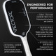 Elongated, thermoformed, and boasting a long handle, we like how the VERSIX®️ Vector XL Pickleball Paddle eases the transition to pickleball for tennis players while helping longtime players achieve reach and power with every shot. The elongated 16.5” shape features thermoformed construction that bonds the 5.75” long forged octagonal handle and main 10.75” by 7.5” main body together for a solid feel on contact and reinforced throat. The extended hitting surface of this paddle is constructed from T700 Toray Raw Carbon fiber which relies on a rigid weave and natural texture to cause the ball to dwell on the surface and then spin off of it, opening up a world of technical shots and dinks. Small details like the squared face shape and sharp hip angles optimize leverage and space for two-handed backhands without sacrificing the feel of the sweet spot.
